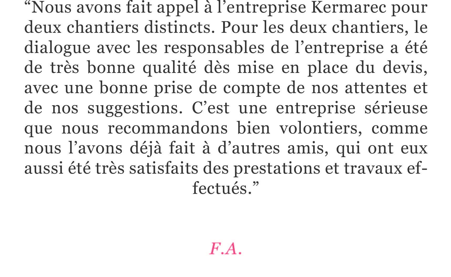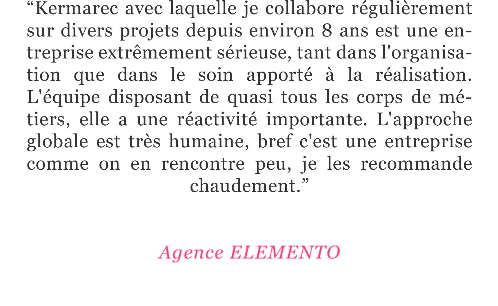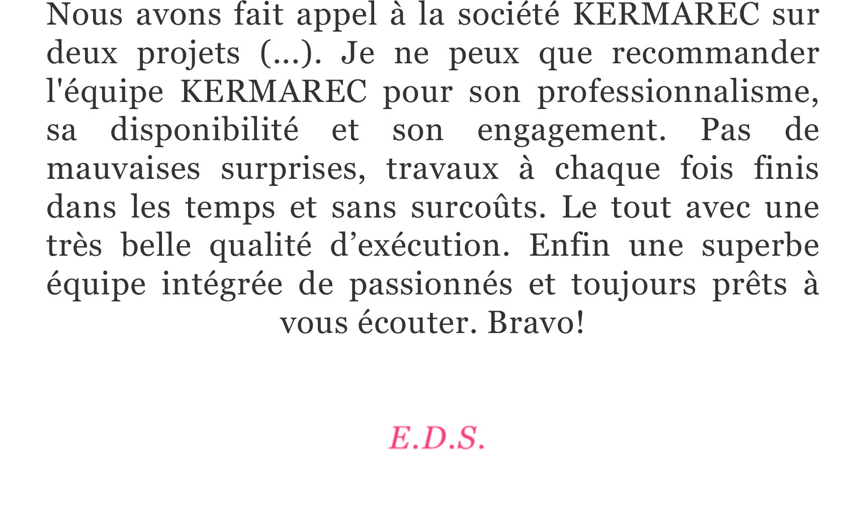 Depuis la création de Kermarec en 2001, nous sommes attachés à ces engagements. Nos clients et partenaires restent nos meilleurs prescripteurs.