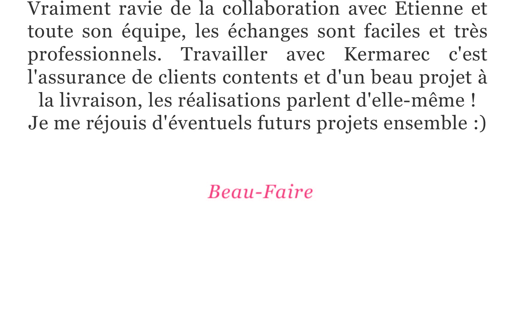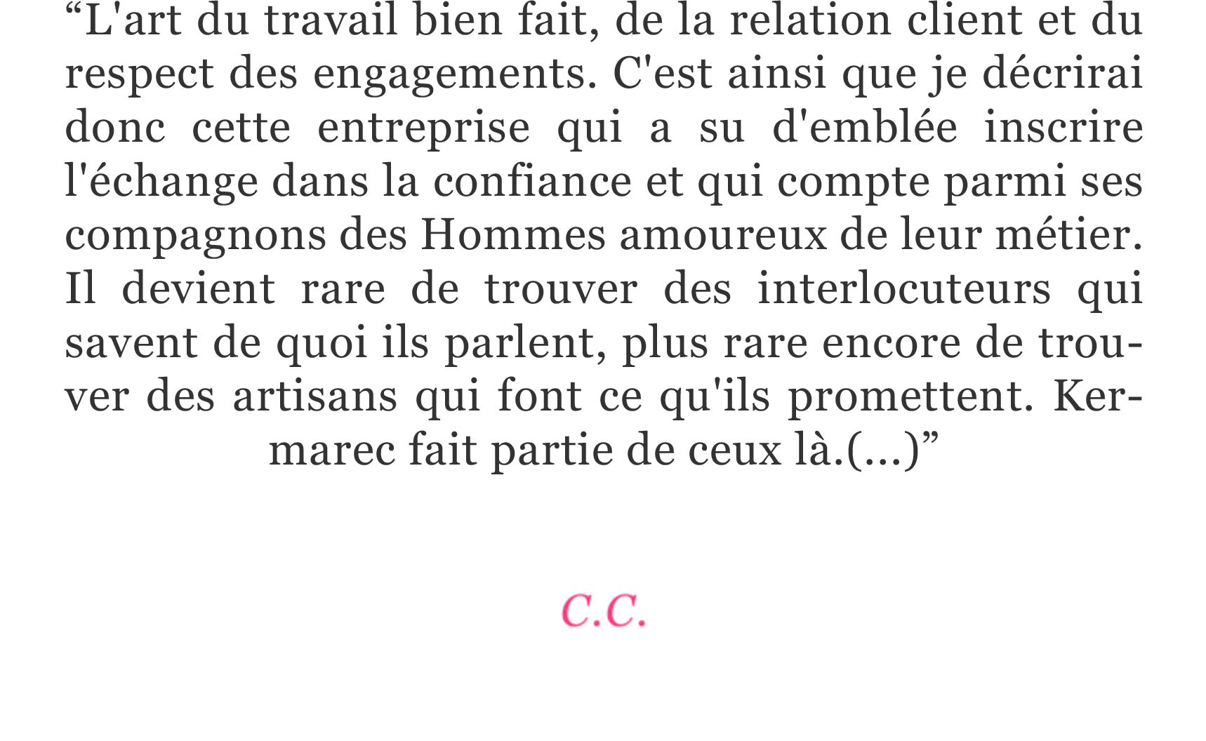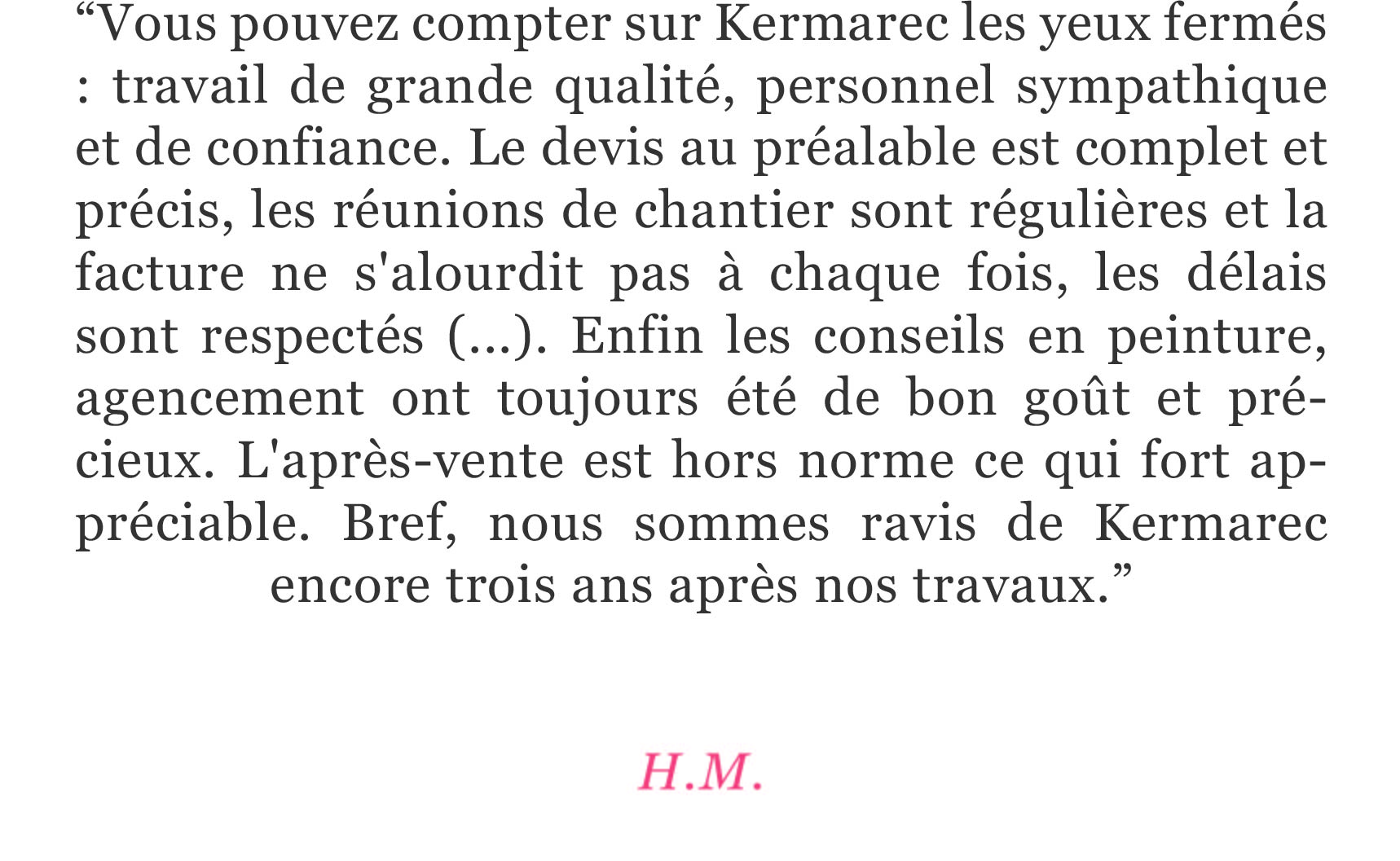 Depuis la création de Kermarec en 2001, nous sommes attachés à ces engagements. Nos clients et partenaires restent nos meilleurs prescripteurs.
