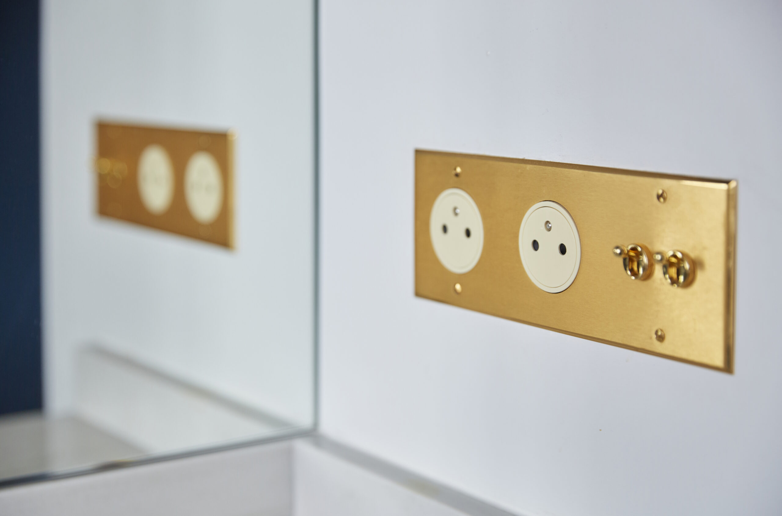 Les touches de laiton des appareillages électriques, des poignées, de la robinetterie et des miroirs, apportent quant à elles élégance et raffinement et parsèment avec modération et équilibre chacune des pièces. A l’image des clients, cet appartement témoigne du goût du détail, de l’amour de l’ancien et de l’ouverture à la modernité.